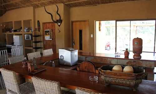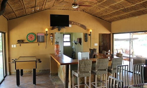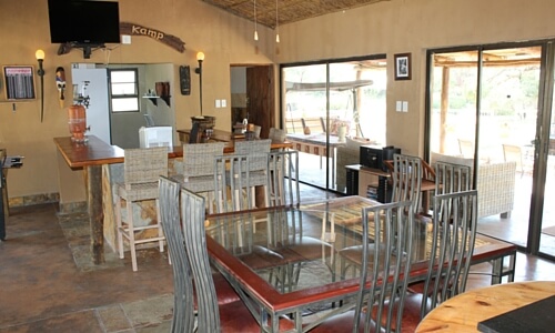 Relaxed and in harmony with its surroundings is the communal bar and dining area where one can enjoy a cold beverage such as SA beers or wines and reflect on the day’s adventures.